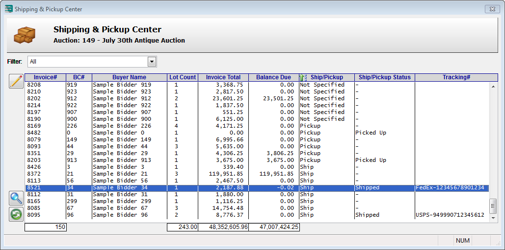 The Shipping Center allows you to see in a glance the status of all the invoices for the auction.